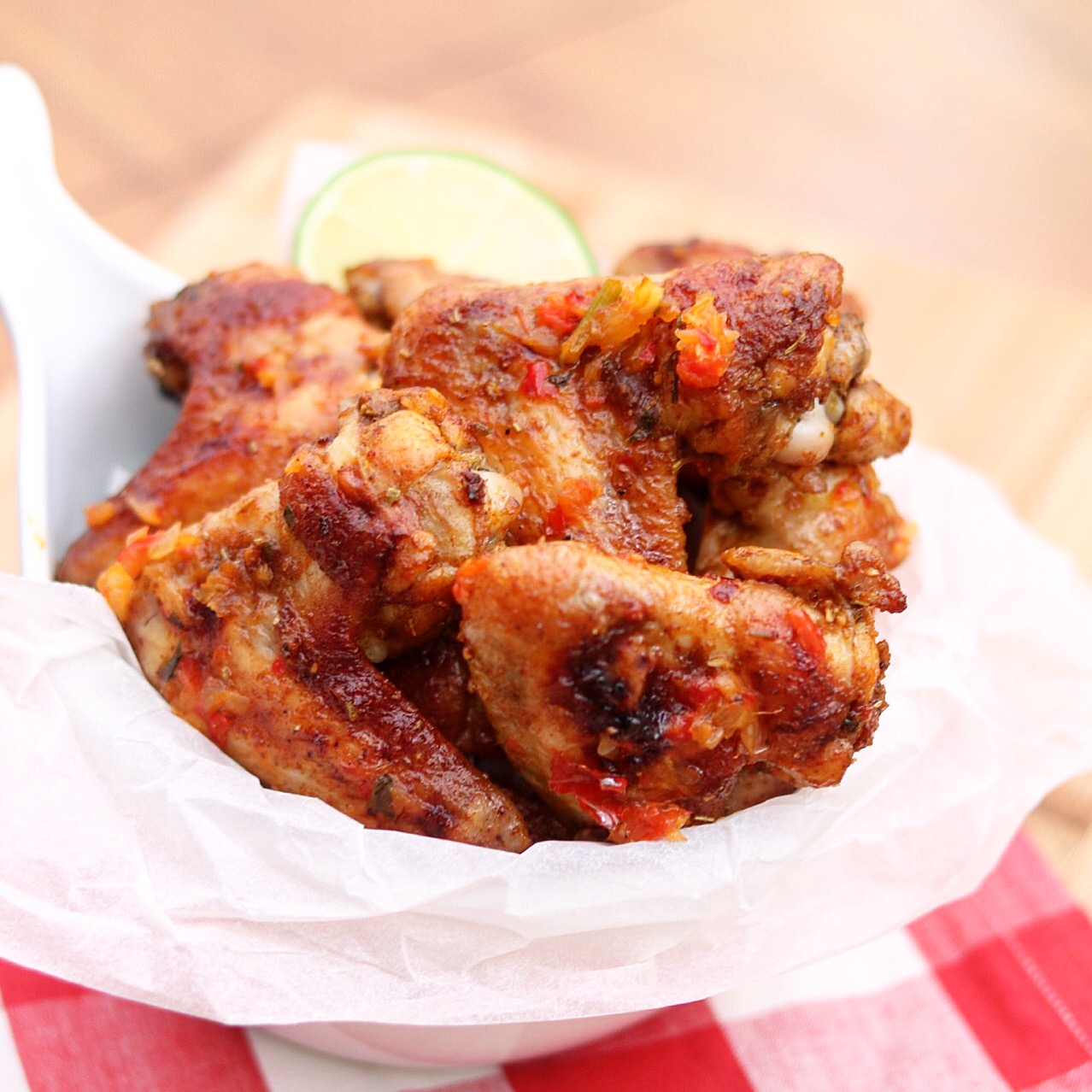 Cut of the tip of the wings and discard. Place chicken wings in a bowl, add all ingredients and mix until wings are all coated.